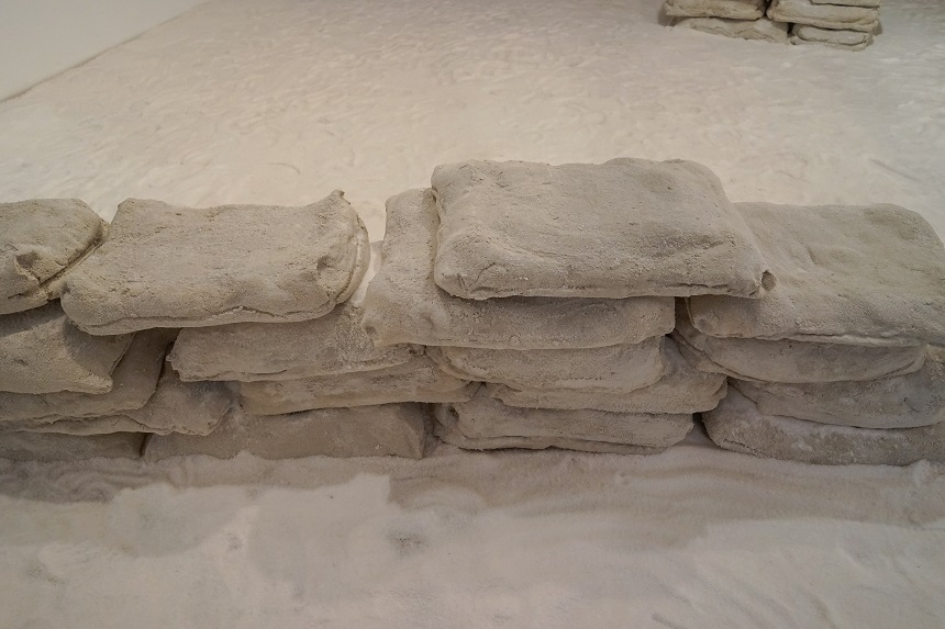 “Almost Blue” mostra-nos várias obras escultóricas, quase todas inéditas, que surgem de uma extensa investigação e trabalho de Maria Trabulo, realizada desde 2014, sobre uma possibilidade de definição do mar, elaborada a partir de contextos políticos tão diversos como as trágicas migrações no Mediterrâneo, a crise financeira dos últimos anos nos países do Sul da Europa, ou as mais recentes lutas activistas em torno das questões ambientais subjacentes à exploração de petróleo no território marítimo português, nomeadamente na zona de Aljezur.