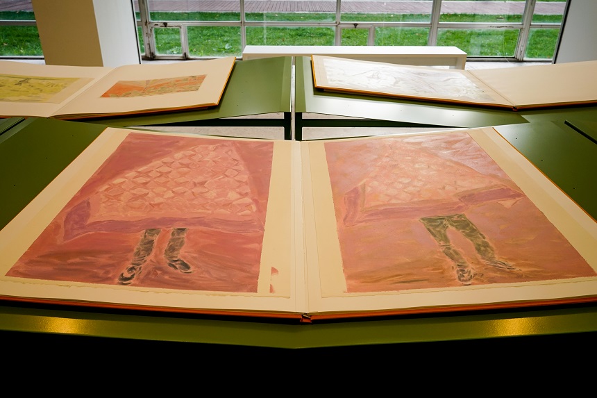 O título desta exposição – Vaivém – remete tanto para o movimento implicado no circundar as vinte e duas mesas da exposição, quanto para a noção de viagem que os conteúdos propõem. Se, por um lado, as sequências estabelecidas dentro de cada livro possibilitam deambular por diferentes temas, perscrutar uma mesma cena ou atravessar pequenas narrativas, por outro, as relações que o artista sugere ao agrupar ou estabelecer determinadas vizinhanças entre livros estimulam uma leitura elíptica em cujos intervalos se funda o espaço da subjectividade do visitante.